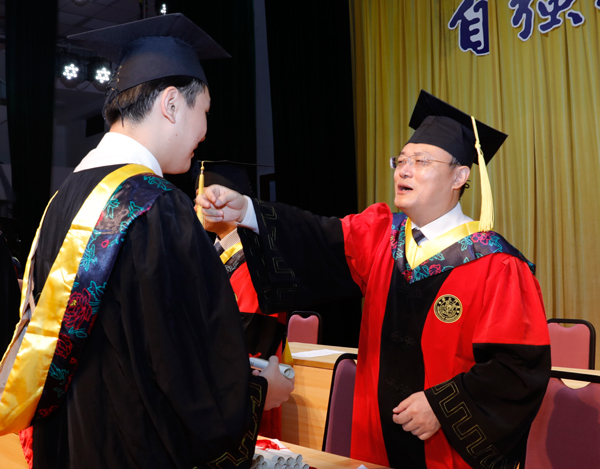闫立峰讲述了自己对“人文”的理解。他认为,“人文”,就是精神层面的富足与强大,生活中的理智与坚韧。希望毕业生们在失望乃至绝望的时候,一定要理性地告诉自己,事情并没有那么糟,在感到快意甚至得意的时候,同样要理性地提醒自己,事情不会总是那么“妙”。在走出校门、走上社会后,以仁爱、理智、勇气和坚韧积极应对未来的机遇与挑战。