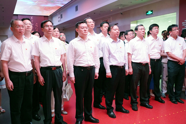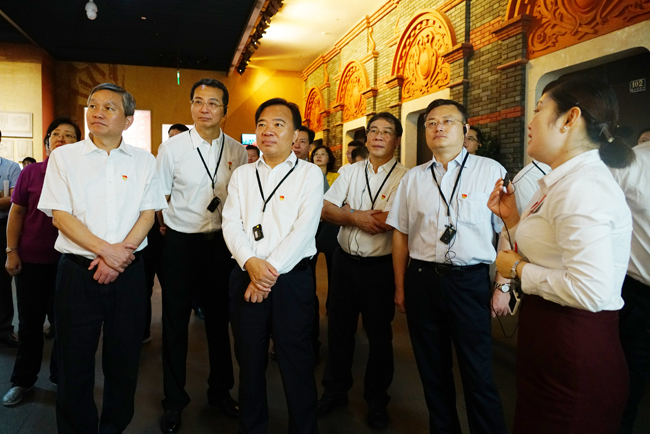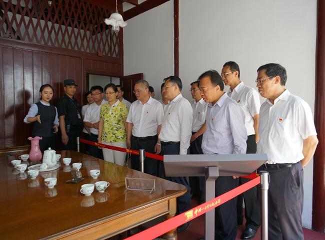 在中共一大会址纪念馆,考察团瞻仰了中共一大会议原址和一大代表群像浮雕,参观了《伟大开端——中国共产党创建历史陈列》《点亮中国——马克思主义在中国早期传播文物史料展》,观看了题为《追梦》的视频短片,全面了解建党的历史和党波澜壮阔的奋斗历程。面对着鲜红的中国共产党党旗,张彦带领考察团全体同志一起重温入党誓词。
