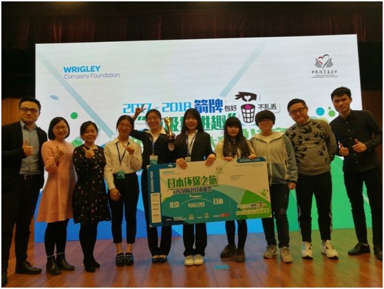 3月23日下午,在北京林业大学学研报告厅举行的2017-2018箭牌“垃圾投进趣”青年公益实践大赛全国总决赛现场,由我校环境与生态学院5名本科生组成的参赛团队——FY团队队长乔碧汀以“固废(顾菲)因分类(冯磊)而不同!”的虚拟爱情故事为开头,将现场评委及观众带入了她们的垃圾分类实践世界中。凭借极具创意的实践方案与出色的现场答辩,最终FY团队赢得来自玛氏箭牌中国、中国扶贫基金会、创意营销、创新思维及环保公益界评委们的认可,获得全国总冠军。