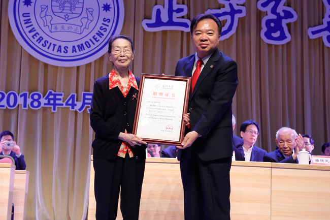 我校党委书记张彦、校长张荣,中国科学院院士田昭武、黄本立、韩家淮,著名教育学家、我校文科资深教授潘懋元,化学家、我校教授周绍民,物理学家、我校教授吴伯僖,经济学家、我校教授胡培兆,校友、厦门大学菲律宾校友会名誉理事长邵建寅,校友、菲律宾著名实业家佘明培先生夫人佘施淑好,校友、厦门大学浙江暨杭州校友会执行会长徐振晓,中骏置业控股有限公司助理总裁库卫红、河仁慈善基金会副秘书长刘昌雨,校友、福信集团有限公司董事、首席投资官邱国龙,福建广生堂药业股份有限公司总经理陈迎,校友、云南祥云祥华中学董事长高龙,校友、厦门七匹狼控股集团执行总裁陈欣慰,校友、唯美实业有限公司董事长曾通,松霖科技股份有限公司,松霖整屋家居品牌创始人、董事长,厦门大学知识产权研究院客座教授周华松,校友林毅雄夫人徐明慧,福建省农村信用社联合社党委副书记、副理事长、主任张镇雄,校友、中国建设银行股份有限公司厦门市分行党委书记、行长黄惠玲,校友、中国银行股份有限公司厦门市分行副行长陈颢,中国工商银行股份有限公司厦门市分行副行长黄立波,中国电信股份有限公司厦门分公司副总经理张奕培,校友、厦门市立方艺品有限公司董事长高力永,校友、邱华炳奖学金设奖方代表、上海高毅资产管理合伙企业董事长邱国鹭,宜信财富厦门分公司总经理戴圆圆,陈唱国际奖学金设奖方代表、厦门金龙汽车座椅有限公司常务副总经理黄耀祥,厦门航空有限公司人力资源部副总经理黄海城,福建省黄仲咸教育基金会副理事长黄湘江,福建省邓子基教育基金会秘书长康永松,清源奖教金设奖人、菲律宾华侨黄育新,闽都国际银行奖教学金设奖方代表、闽都中小银行教育发展基金会秘书长朱孟楠,以及学校领导、师生代表、附属医院职工代表等出席庆祝大会。校党委副书记、副校长李建发主持大会。