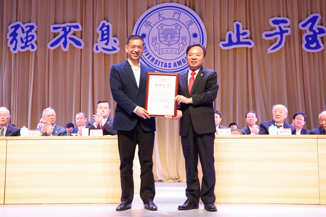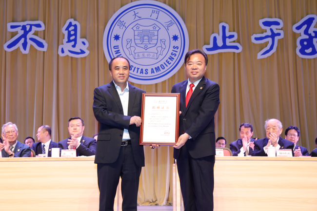 此外,在97周年校庆之际,我校企管系1985级校友、厦门姚明织带饰品有限公司董事长、厦门大学厦门校友会会长姚明,我校一位热心校友,我校建筑与土木工程学院1941级校友林言之子林遵瀛,我校生命科学学院1993级校友李东波、毛颖波伉俪等5位杰出校友和热心人士无私地支持我校教育事业发展,他们因工作繁忙未能出席大会,学校向他们一并表示衷心感谢。
