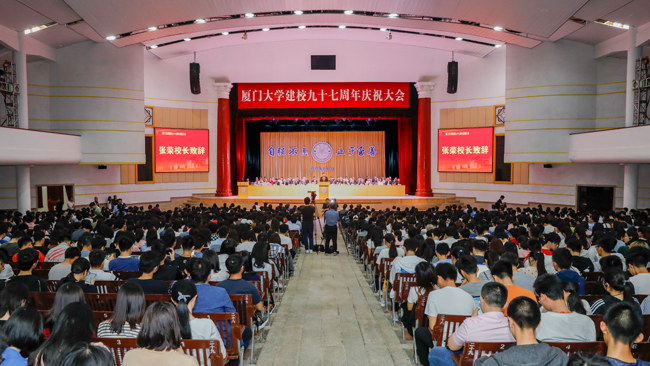 4月6日上午,厦门大学建校九十七周年庆祝大会隆重举行。海内外嘉宾、校友和师生代表共3000余人,欢聚建南大会堂,共同庆祝厦门大学97周年校庆。