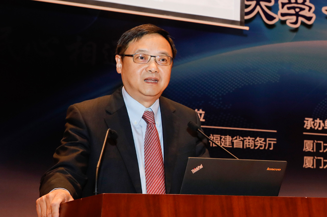 7日上午,我校党委书记、厦门大学“一带一路”研究院理事长张彦,福建省商务厅厅长吴南翔,富邦金控高级顾问、富邦华一银行监事、厦门大学富邦两岸金融与产业研究中心共同理事长龚天行出席论坛开幕式并致辞。我校原校长、厦门大学“一带一路”研究院院长朱崇实教授主持开幕式。