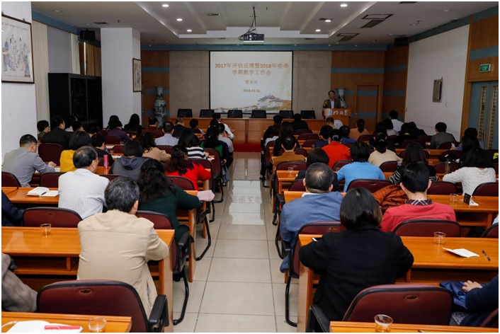 计国君从教书育人、网络课程、毕业论文(设计)等三个方面总结了2017年评估的情况。他指出,教书育人总体情况良好,但我们仍必须向大学课堂要质量,有效提升学生学习动力和能力,提高师生的获得感;毕业论文(设计)较往年有所进步,但提升质量仍应是下一步各个学院重点工作之一;网络课程在“量”上推进较好,今后将工作重心转向深度的内涵质量以及深入的教学活动建设。
