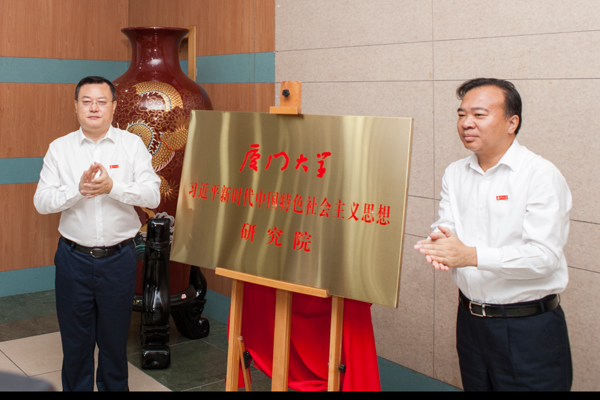 为深入学习贯彻党的十九大精神,大力推进习近平新时代中国特色社会主义思想研究,充分发挥多学科、综合性和研究型大学优势,传承学校马克思主义研究传播的优良传统,11月3日上午,学校举行厦门大学习近平新时代中国特色社会主义思想研究院成立仪式暨专家座谈会,数十名省市专家学者齐聚一堂,共同就如何办好习近平新时代中国特色社会主义思想研究院,如何进一步深入学习贯彻落实党的十九大精神等进行探讨和交流。成立仪式上,校党委书记张彦、校长张荣共同为研究院揭牌。校党委副书记、副校长李建发主持仪式,张荣主持座谈会。