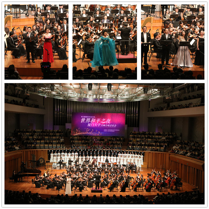 激昂的曲调,铿锵的朗诵,优美的歌声,久久萦绕在大剧院中。厦大师生用音乐语言抒发着爱党爱国信念和呼唤世界永久和平的共同心愿。