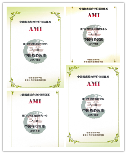 近日,由中国社会科学院中国社会科学评价研究院主办,主题为“中国特色新型智库现状、评价及经验总结”的第四届全国人文社会科学评价高峰论坛在京举行。论坛上,中国社会科学评价研究院发布了《中国智库综合评价AMI研究报告(2017)》。我校台湾研究中心、宏观经济研究中心、东南亚研究中心、教育研究院等四个研究机构入选中国核心智库行列。