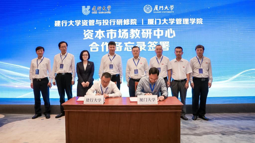 建行大学资管与投行研修院与厦门大学管理学院合作共建资本市场教研中心,将以此为契机,创新合作机制,在企业培训、学生联合培养、产学研协同创新、高端智库建设等方面开展务实合作,把厦大的学科优势、人才优势和科教优势转为金融机构发展的创新优势、产业优势和服务优势,打造产学研融合标杆,共同致力于服务经济社会发展。