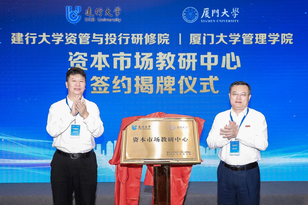 张荣与王浩为建行大学资管与投行研修院-厦门大学管理学院资本市场教研中心共同揭牌。