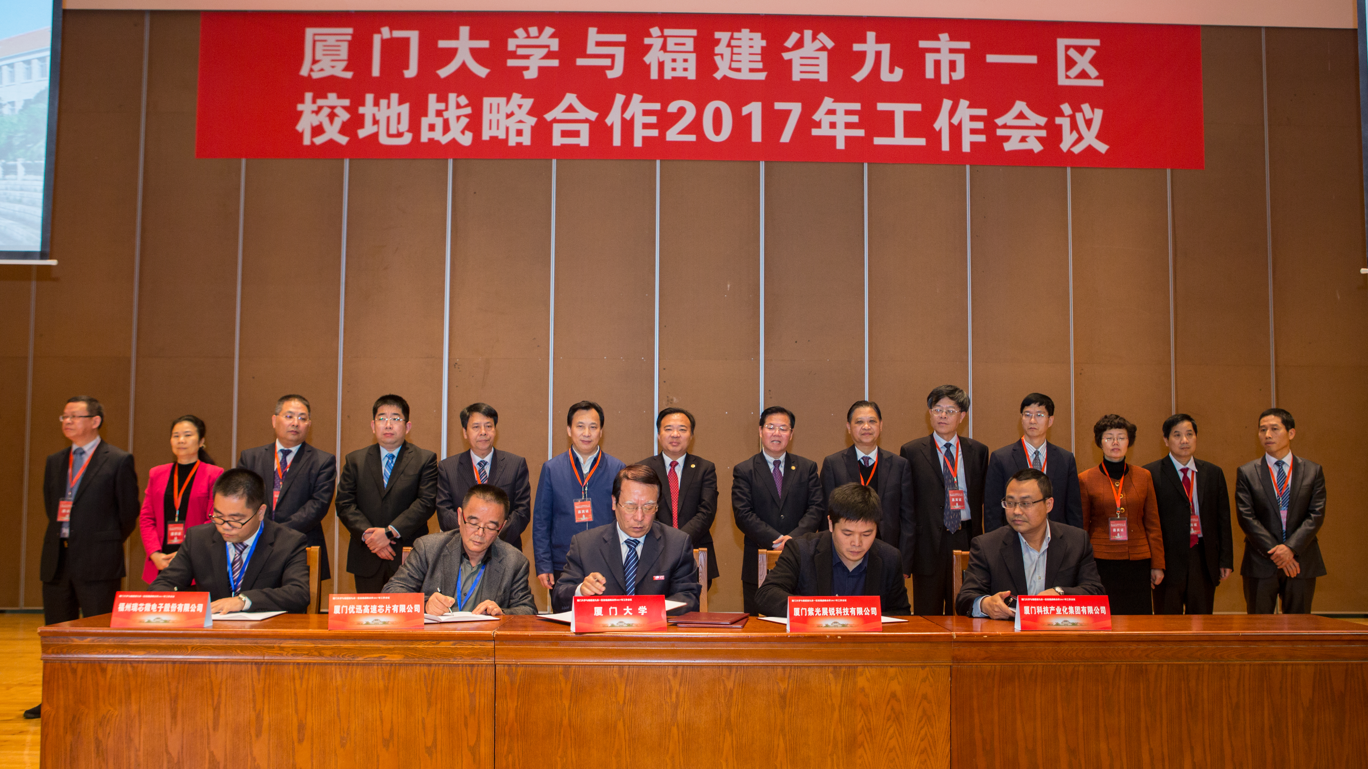 会上,九市一区领导、企业代表、我校相关学院介绍了开展校地校企战略合作的经验和体会。副校长邬大光、叶世满代表学校与厦门市海沧区、同安区、三明学院、中国移动福建公司、联芯集成电路制造(厦门)、三安集成电路、厦门天马微电子、福州瑞芯集成电路制造(厦门)、厦门紫光展锐科技、厦门科技产业化集团等签署合作协议。下午,学校各单位精心组织了创新成果展示、组织了合作对接洽谈、服务福建发展论坛、石墨烯产业技术创新促进会成立大会等形式多样的对接交流活动。