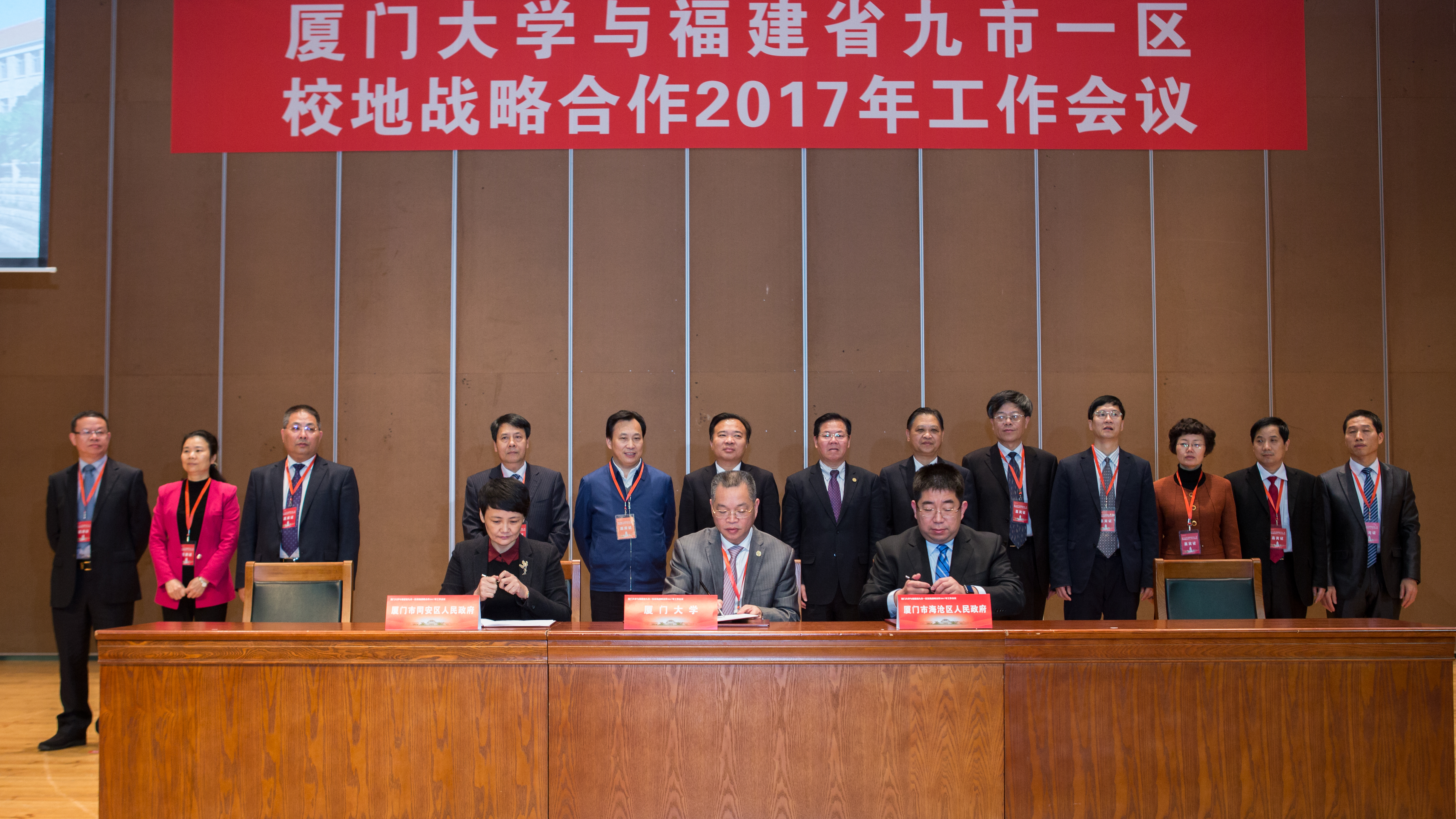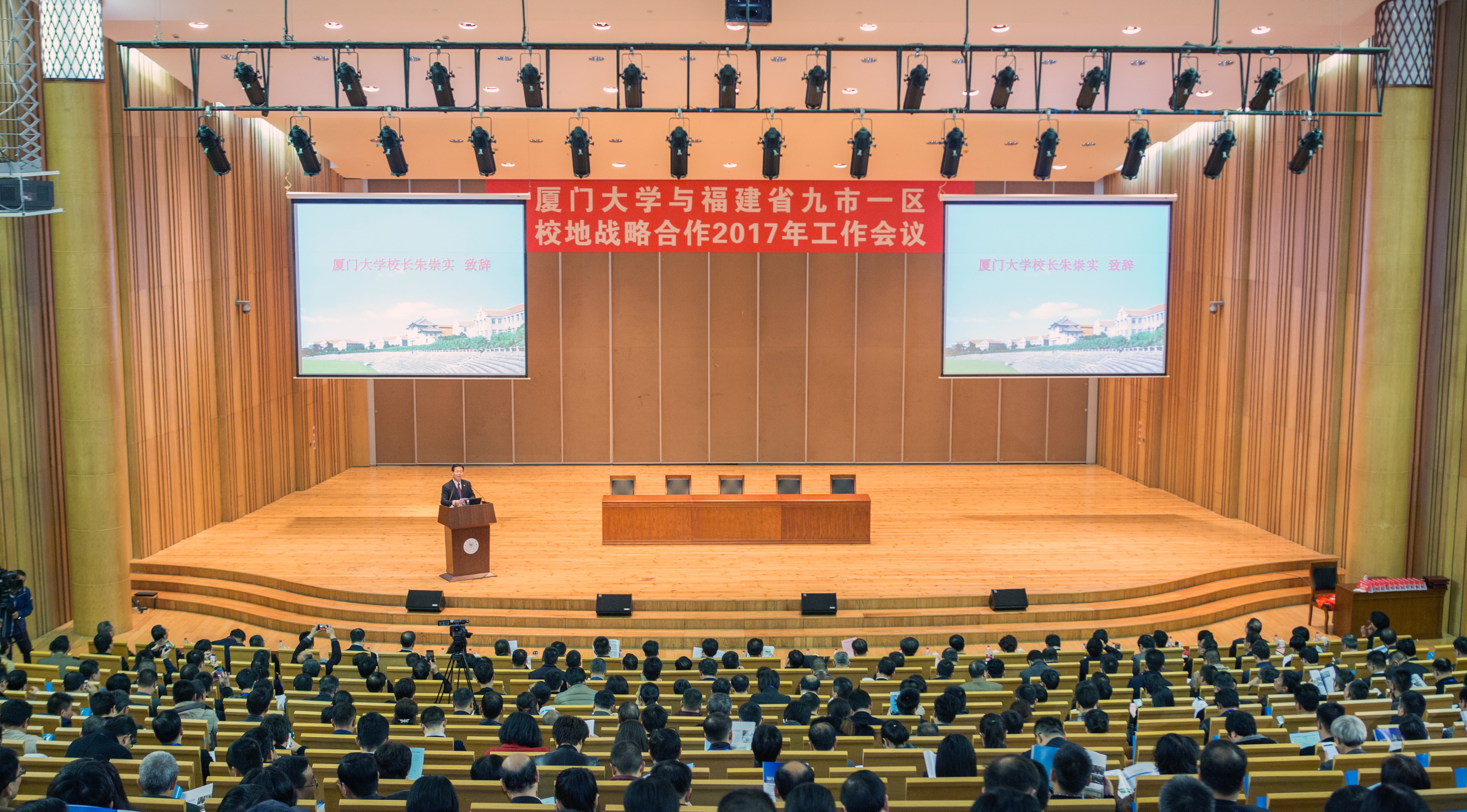 3月11日,厦门大学与福建省九市一区校地战略合作2017年工作会议在我校科学艺术中心召开。省发改委、教育厅、科技厅、经信委、海洋与渔业厅,省各地市(区)政府、部门、企业代表和我校校院领导、专家学者500多人共聚一堂,共商校地合作对接、共谋服务福建发展。《厦门大学服务福建发展年度报告(2016)》同期发布。