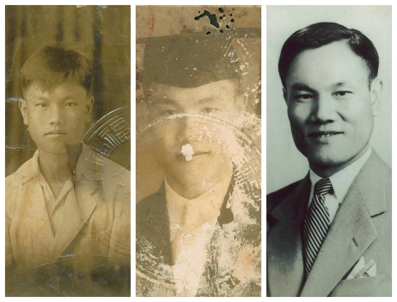 从左到右,依次是高中时期、本科毕业时期、留美归国时期的蔡启瑞先生。