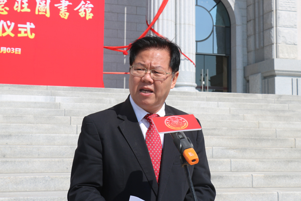 朱崇实表示,曹德旺先生是中国优秀企业家的杰出代表,他在30多年的时间里,把一个乡镇企业发展成为世界最大的汽车玻璃生产商,成为中国的一个骄傲、一个荣耀,在他身上集中体现了企业家“敢于创新、勇于创业”“严守信用、一诺千金”“牢记使命、勇担责任”的宝贵品格。学校举行隆重而简朴的德旺图书馆揭牌仪式,一是要向曹德旺先生表示由衷的感恩之情,二是要学习他为人的品格、做事的精神。由衷地期望厦门大学的同学们能很好地利用图书馆宝贵资源,努力学习、刻苦阅读,能像曹德旺先生那样,做一个敢创新、守信用、有责任的社会栋梁之才,为国家富强,为中华民族的伟大复兴做出自己的一份宝贵贡献。