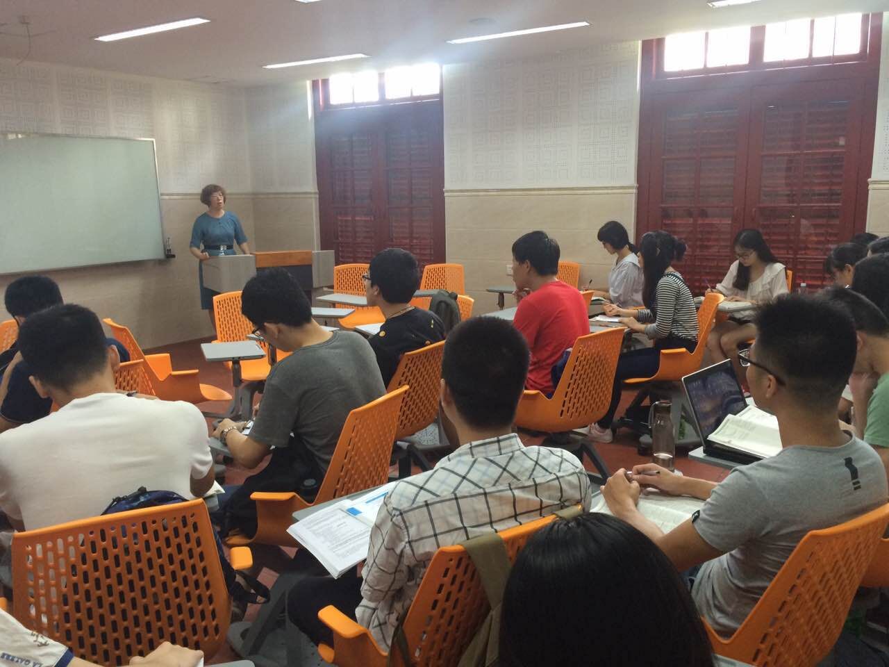 早上8点,法学院《国际贸易法》课程准点开课。这是一门全英文授课的选修课。课堂上,老师房东用一口流利的英文讲授知识点,台下,同学们认真听着,记录着。“早上八点的课,7点50分,同学们就基本到齐了。课堂出席情况很好,没有一个学生迟到或请假,而且大家上课状态都很好,一切如常。”房老师欣慰地说道。