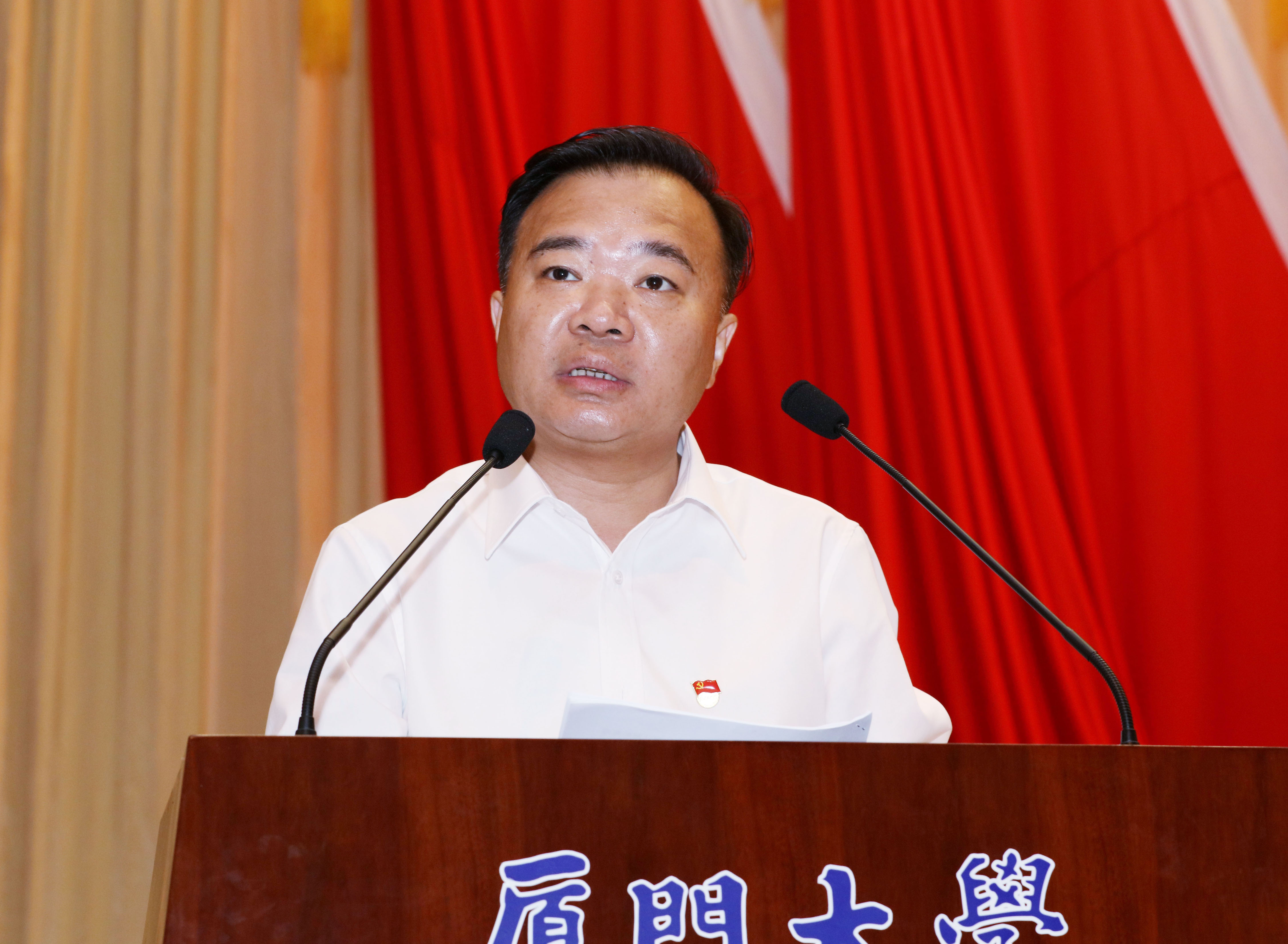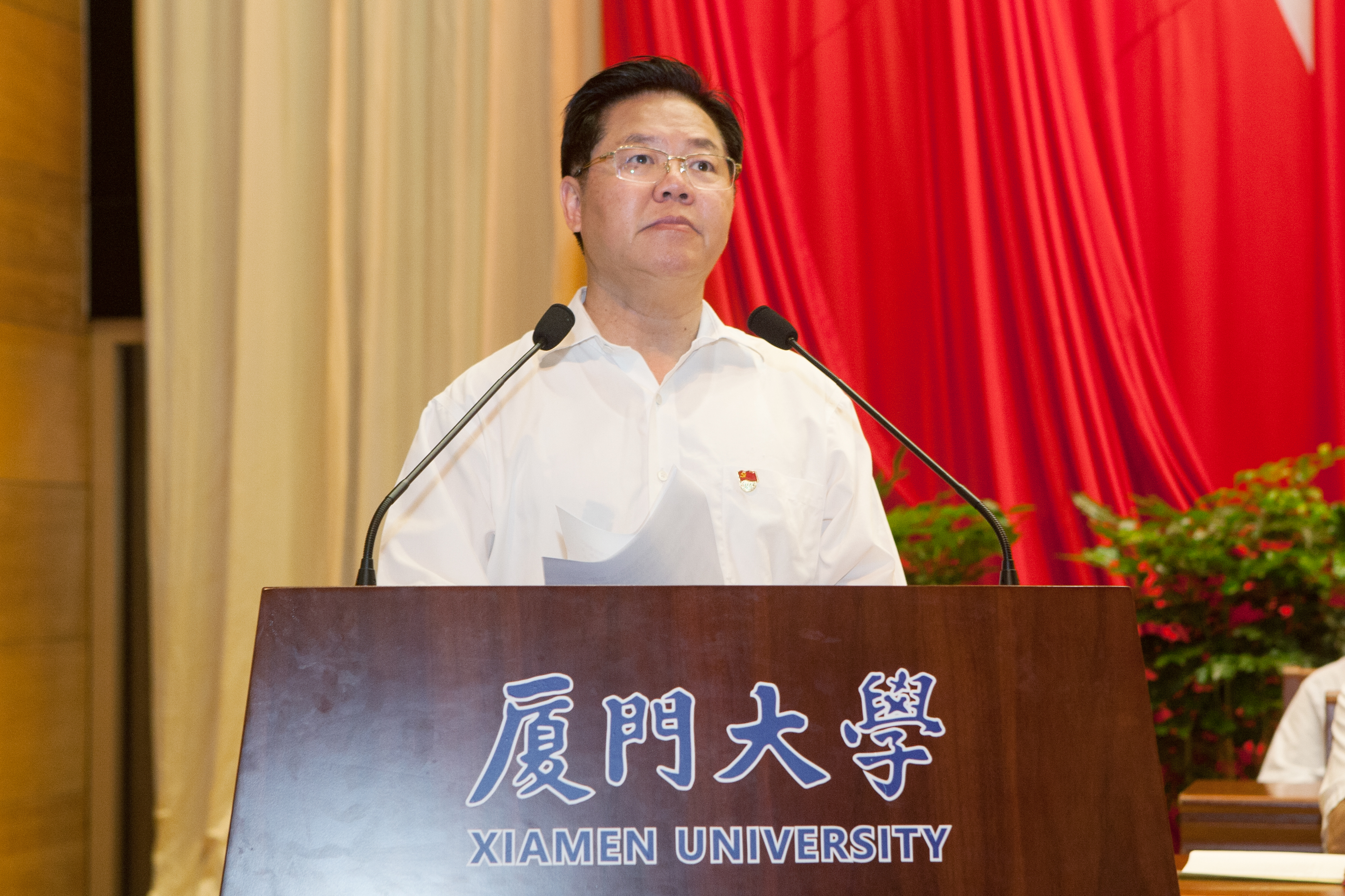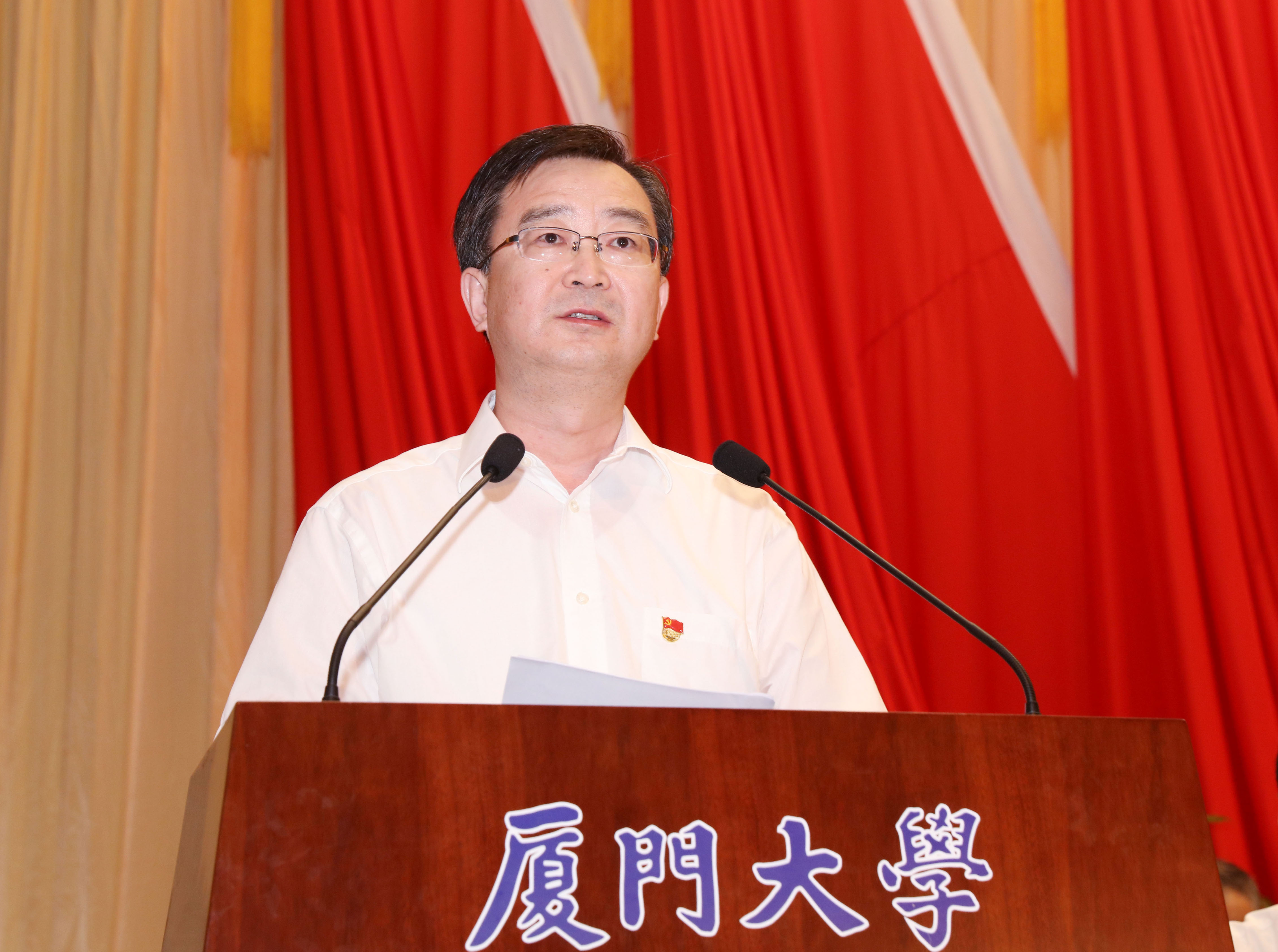王宁代表省委省政府,向我校广大党员及全体师生致以亲切问候,向全体受表彰的集体和个人表示热烈祝贺,对我校党的建设和改革发展事业给予充分肯定。他就加强改进党的建设,推动学校科学发展提出了三点希望:一是希望厦门大学继续弘扬优良的传统和作风,在“两学一做”中走在前、做表率。二是希望厦门大学在加强思想政治工作中当示范、做标兵。三是希望厦门大学不断加强校地共建,为经济社会发展,特别是福建的发展做出更大贡献。王宁表示,省委省政府将一如既往地为厦门大学的建设发展提供有力的保障,做好必要的服务。