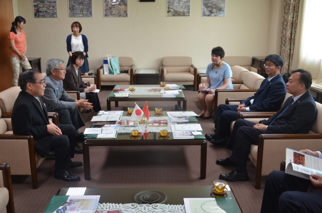 与名古屋大学校长松尾清一探讨推进两校合作。