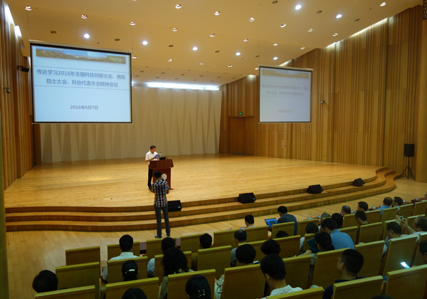 6月7日上午,学校在科艺中心召开会议,学习传达2016年全国科技创新大会、两院院士大会、科协代表大会精神。校党委书记张彦主持。校长朱崇实讲话。