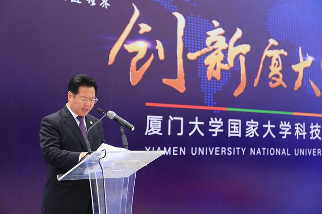 朱崇实在致辞中表示,在厦大迎来95周年华诞之际,厦大科技园主园区开工仪式隆重举行,将为厦大国家大学科技园的发展翻开崭新的一页,迎来快速发展的新阶段,同时也将提升我校服务地方发展的水平和实效。厦大高度重视科技成果转化和产业化,科技园主园区的建设将为厦大的科技成果孵化和转化提供更加优越的平台和条件,相信在各级政府和社会各界的指导和支持下,厦大科技园一定能够取得新的成绩,成为推动产业转型升级、推动大众创业万众创新的力量源泉。