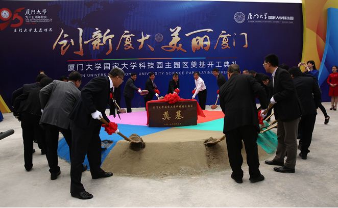 领导和嘉宾共同为厦大科技园主园区奠基培土。