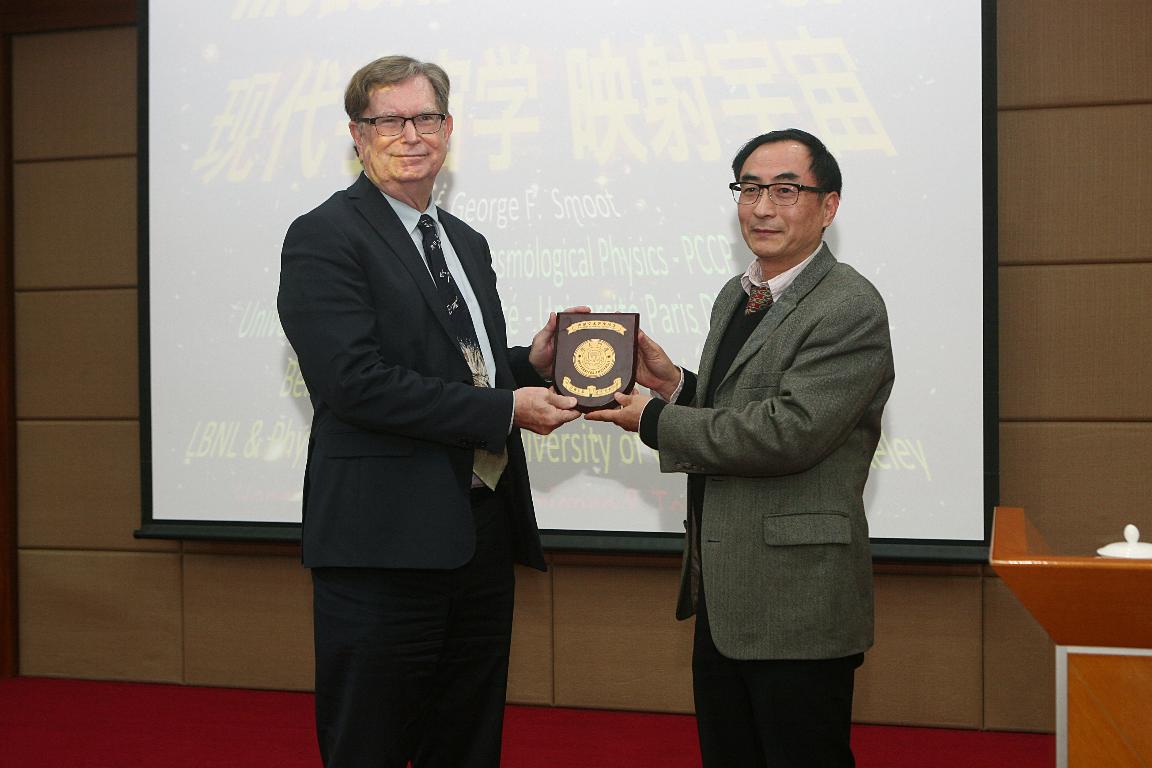 George Smoot教授是美国伯克利加州大学物理学教授、天体物理学家、宇宙学家。2003年,获得爱因斯坦奖章。2006年,与John C. Mather因“发现了宇宙微波背景辐射的黑体形式和各向异性”而共同获得了诺贝尔物理学奖。其使用COBE卫星的工作,有助于巩固宇宙大爆炸理论。