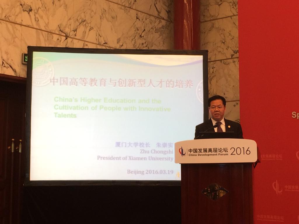 3月19-21日,校长朱崇实应邀出席在北京钓鱼台国宾馆举行的“中国发展高层论坛2016年会”。中国发展高层论坛年会由国务院发展研究中心主办、中国发展研究基金会承办,已经成功举办了十六届,成为我国政府与国际经济界、学术界就中国与世界经济社会发展中的重大问题进行高层沟通和坦诚对话的一个重要渠道。今年年会以“新五年规划时期的中国”为主题,围绕“十三五”时期的改革发展、全面建成小康社会、稳健货币政策、对外开放、深化财税体制改革等议题进行探讨。