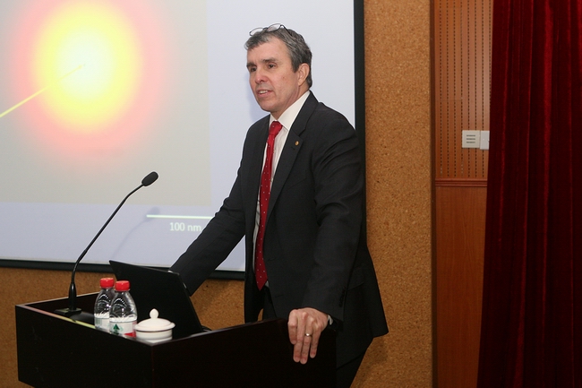 3月24日上午,诺贝尔化学奖得主Eric Betzig博士及其夫人吉娜博士应邀做客南强学术讲座。这是本月内,继诺贝尔经济学奖获得者James J. Heckman教授、诺贝尔物理学奖获得者GeorgeSmoot教授两位学术“大咖”的专题讲座之后,第三场由诺奖得主主讲的学术讲座。校党委副书记林东伟为EricBetzig颁发南强学术讲座纪念牌。讲座由化学化工学院院长江云宝主持。