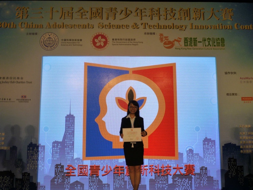 8月20日至24日,由中国科协和香港特区政府共同主办的第30届全国青少年科技创新大赛在香港亚洲国际博览馆举行。经校团委推荐,由我校医学院2011级临床医学系本科生杨奕雯、邓小茜组成的参赛团队最终荣获科技创意类项目一等奖,并获评十佳青少年科技创意之星称号。