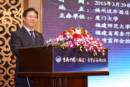 3月29日,我校在福州为厦门大学中国(福建)自贸区研究院、厦门大学富邦金融与产业研究中心、中国(福建)自贸区协同创新中心举行揭牌仪式暨首届福建自贸区高端论坛。本次论坛由厦门大学、福建省商务厅、福建师范大学联合主办,台湾富邦金控协办,厦门大学经济学院与王亚南经济研究院、中国(福建)自贸区研究院、厦门大学富邦两岸金融与产业研究中心、福建师范大学经济学院、福建师范大学自贸区综合研究院联合承办。