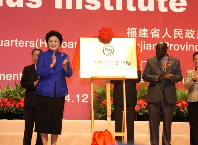 会上,刘延东为设在我校的孔子学院院长学院揭牌,并为2014年先进孔子学院奖、先进孔子课堂奖、孔子学院先进个人奖、孔子学院先进中方合作院校奖和孔子学院开创者奖获得者颁奖。