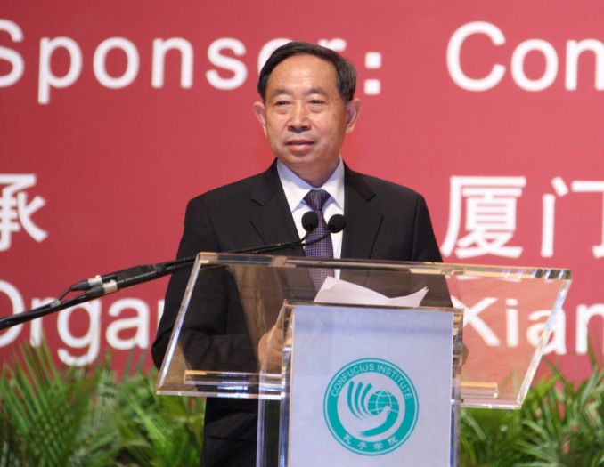 校长朱崇实在大会上发言。他首先代表厦门大学全体师生向远道而来的朋友们表示热烈的欢迎和诚挚的问候。向长期以来关心与支持厦门大学孔子学院建设和国际汉语推广工作的各位领导、各界朋友表示衷心的感谢。