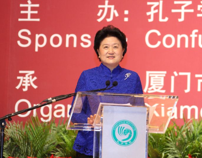 12月7日上午,第九届孔子学院大会在厦门国际会议中心海峡厅隆重开幕。中共中央政治局委员、国务院副总理、孔子学院总部理事会主席刘延东出席开幕式并致辞。开幕式由教育部部长、孔子学院总部理事会副主席袁贵仁主持。教育部副部长、孔子学院总部理事会常务理事郝平出席开幕式。