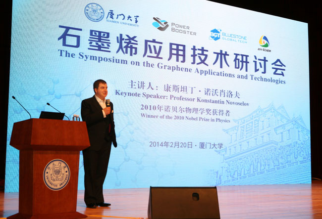 2月20日上午,由2010年诺贝尔物理学奖获得者康斯坦丁·诺沃肖洛夫(Konstantin Novoselov)教授主讲,厦门大学、美国蓝石科技公司、辉锐科技集团联合举办的“石墨烯应用技术研讨会”在我校科学艺术中心报告厅召开。校长朱崇实,学校相关部门负责人,我校教师学生代表共900余人出席。