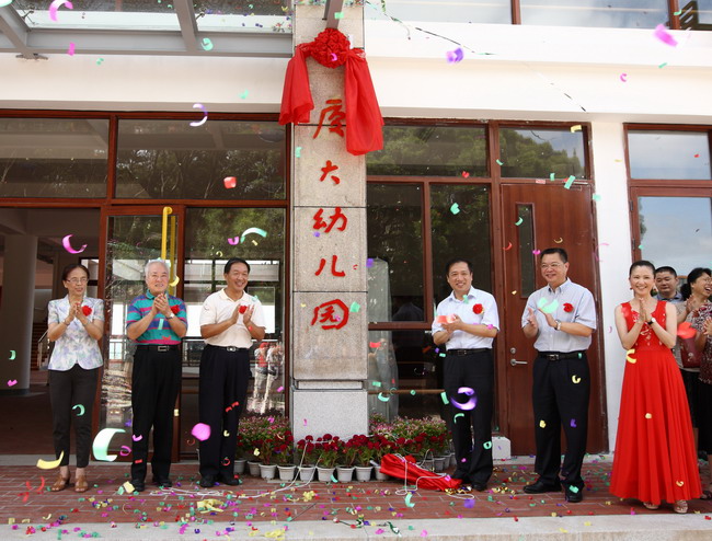 市思明区教育局、大学路派出所、我校党委组织部、宣传部、财务处、资产处、基建处、保卫处、校工会、校团委、后勤集团、图书馆等单位负责人以及幼儿园新老园友共同参加了新园舍启用揭牌仪式。