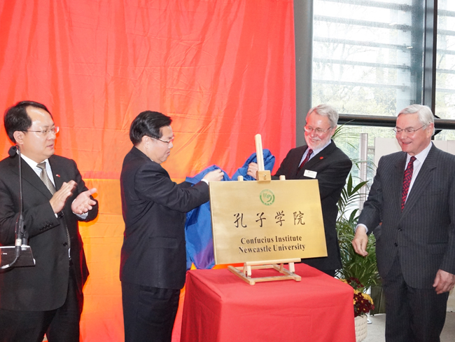 揭牌庆典上,中国驻英使馆公使衔教育参赞沈阳、中国驻曼彻斯特总领事馆潘云东总领事等分别发表了讲话,纷纷对纽卡斯尔大学孔子学院的建立表示祝贺与支持,并对我校及纽卡斯尔大学以孔子学院为桥梁拓展两校战略合作表示赞赏。