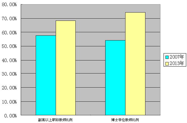 经过5年多的建设,我校人才队伍的数量、质量和结构等方面都得到了较大的提高和改善。学校全职专任教师总数从2007年的1922人发展到现在的2374人,占教职工总数的比例从47.7%上升到52.7%,具有博士学位教师的比例从54.2%提高到74.1%。高层次人才、青年学术骨干数量增幅明显;国家自然科学基金委创新群体、教育部创新团队等团队建设取得长足发展。