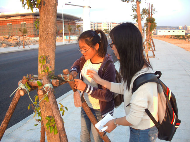 “我们这个活动其实目的很简单,就是希望大家在实践的过程中逐步提高保护树木、保护环境的意识。翔安校区的树很多,我们不能每棵都顾及到,但我们将尽我们最大努力去关注更多的树木。”队长这样说道。