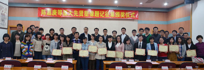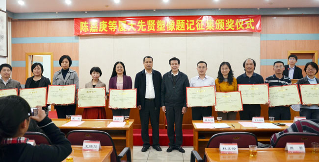 4月2日晚,“铭刻——永远的纪念”陈嘉庚等厦大先辈塑像题记征集活动颁奖仪式在颂恩楼220会议室举行,原校党委书记、校友总会理事长王豪杰,校党委副书记林东伟等出席并与学校相关部处负责人一起为获奖的个人和单位颁奖。