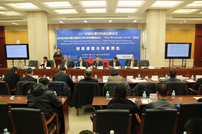 2月23日上午,我校与新华社《经济参考报》联合在京举行“2013年中国宏观经济高层研讨会暨‘中国季度宏观经济模型(CQMM)’春季预测发布会”,公布对中国2013年至2014年共八个季度的宏观经济主要指标的预测及相关政策模拟结果,并对当前经济形势进行评价和展望,提出政策建议。