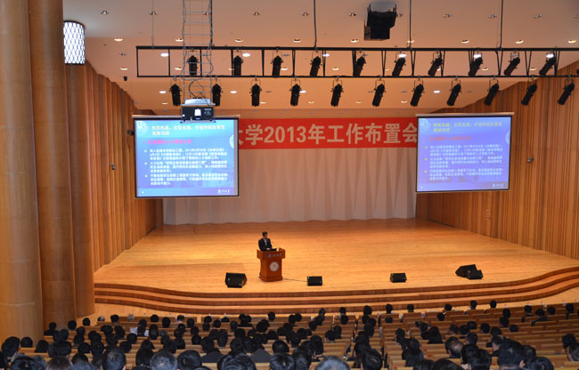 3月6日下午,学校召开2013年工作布置会。校长朱崇实做学校2012年工作总结和2013年学校工作计划要点说明,校党委书记杨振斌主持并讲话。会议指出,今年是全面贯彻落实党的十八大精神的开局之年,也是实施“十二五”规划承上启下之年,全校上下要将学习贯彻党的十八大精神活动引向深入,围绕实施学校“十二五”规划,集中精力走内涵式发展道路,着力提高教育质量,认真开好学校第十次党代会,加快推进世界知名高水平研究型大学建设。