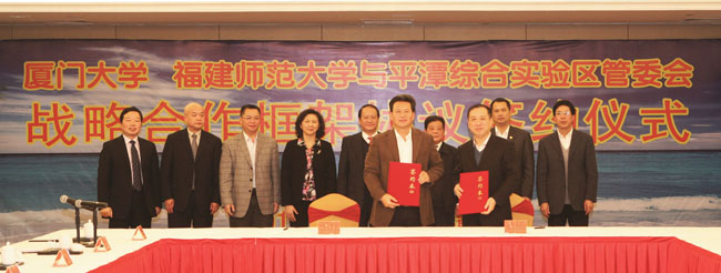 福建省教育厅副厅长张程远,平潭综合实验区党工委委员、管委会副主任陈东荣、周青松,我校党委副书记林东伟,党委常委、副校长詹心丽、叶世满,学校办公室、发展规划办公室、研究生院、科技处、社科处以及经济学院、公共事务学院、海洋与地球学院、环境与生态学院、信息科学与技术学院、台湾研究院、能源研究院等单位有关领导出席签约仪式。