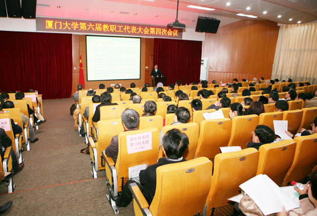 18日上午,大会举行第一次全体会议。会上,校长朱崇实作题为《改革创新攻坚克难内涵发展提升质量》的工作报告,报告回顾总结了我校2012年完成的主要工作和取得的成绩,对2012年审计署在我校开展校长任职期间经济责任履行情况审计反馈的意见和建议以及我校两大项目的后续解决情况作了说明,并介绍了2013年的工作设想与思路。副校长韩景义做2012年学校财务工作报告,就学校2012年度预算执行及2013年度预算作了说明。校工会主席林永生主持会议。