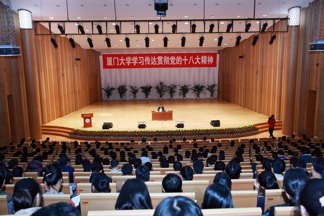 11月27日、28日,学校先后在校本部和翔安校区召开会议传达学习党的十八大精神,并就全校学习宣传贯彻党的十八大精神工作进行动员部署。校党委书记杨振斌强调,学习十八大精神一定要原原本本、认认真真、深刻理解,要把十八大精神的学习贯彻与学校和本单位的实际紧密结合起来,以实实在在的行动和成效贯彻落实好十八大精神,推动学校各项事业取得新发展。