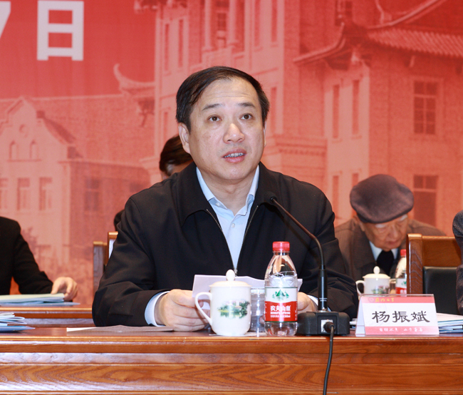 杨振斌对我校哲学社会科学的未来发展提了出四点意见:一是要把学习贯彻党的十八大精神转化为繁荣发展我校哲学社会科学的强大动力;二是要把推进中国特色社会主义理论研究转化为繁荣发展我校哲学社会科学的实际行动;三是要切实承担起哲学社会科学的育人功能,努力提高我校人才培养质量;四是要高度重视,加强领导,确保繁荣发展哲学社会科学的各项目标任务落到实处。
