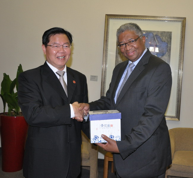 会谈结束后,朱校长一行饶有兴致地参观了我校和斯坦陵布什大学共建的孔子学院及该校的中国研究中心,并参观了非洲孔子学院建设成就展。2008年我校与斯坦陵布什大学正式签署协议共建孔子学院,并于当年派出中方院长。2009年孔子学院的定位从中国研究转向汉语教学与推广,与大学现代外语系和中国研究中心构成合作伙伴关系。斯坦陵布什大学孔子学院现有办公教学场地近250平方米,专职教师7人、业余教师4人,现任中方院长为我校教育研究院谢作栩教授。孔院下辖14个大、中、小学和企业的汉语教学点,并与当地教师共同为该校中文专业的6个班开课。2012年1月至8月注册学生数达640多人次,2011年至今开展各类文化活动57次,共计约6730人参加,业已发展成为非洲地区最好的孔子学院之一。