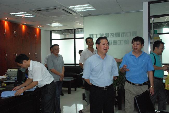 朱崇实先后来到厦门大学建筑设计研究院、南强建筑工程公司、建南建设监理公司、建南环境艺术公司、建南文化创意公司等六家企业。他亲切慰问了各家企业的员工,询问大家在搬迁之后对新环境的适应情况,并认真了解了各家企业的工作环境,工作强度和经营现状。他高度评价了各企业的空间布局和设置,再次肯定了搬迁的正确性。他指出,各企业在一起办公要充分发挥聚集效应,增强信息互通,做到资源共享、协同发展,要以我校资源为支撑,努力将公司做大做强,促进学校产业的发展。