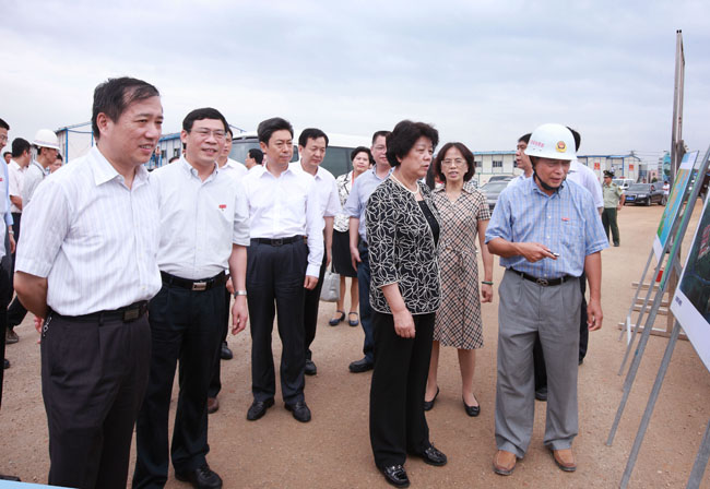 雨后的翔安校区空气格外清新,一幢幢建设中的楼房正在落架,红瓦白墙显露出浓浓的嘉庚风格,校区道路正在铺设沥青路面。陈至立走到校区建设者中间,与大家一一握手,感谢各位建设者为建设翔安校区付出的努力,向大家表示慰问,并来到展板前,一面观看展板上的规划图和效果图,一面认真听取着我校的介绍和说明,不时地就感兴趣问题同我校领导进行交流。