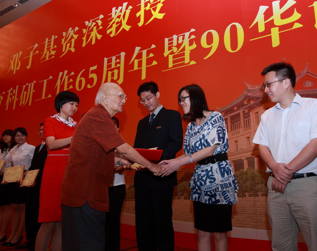 邓子基资深教授是我国社会主义财政学的奠基人和开拓者之一,我校财政科学研究所名誉所长,全国重点财政学科总学术带头人,中国财政学界主要学派“国家分配论”的主要代表人物之一。在65年的教育生涯中,邓子基教授已公开出版各类专著、译著、教材(含合作)75本,论文400多篇,共计2000余万字。为国家培养了27届,共107位博士研究生(含博士后4位),300多位硕士研究生和数以万计的本科毕业生和中央电视大学毕业生,这些学生都在各行各业成为事业中坚。