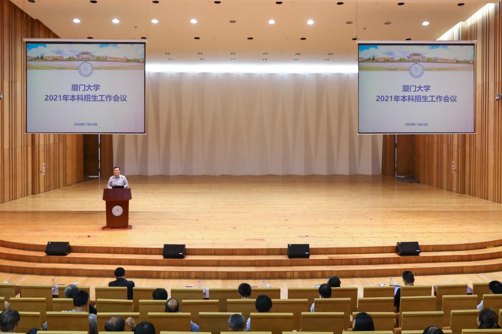 11月23日下午,厦门大学2021年本科招生工作会议在科学艺术中心音乐厅召开,深入学习贯彻十九届五中全会精神和国家、福建省关于深化考试招生制度改革的总体部署,总结经验、分析形势,对2021年招生工作进行部署和安排。校长张荣、校党委副书记赖虹凯、副校长周大旺出席。会议由副校长邱伟杰主持。