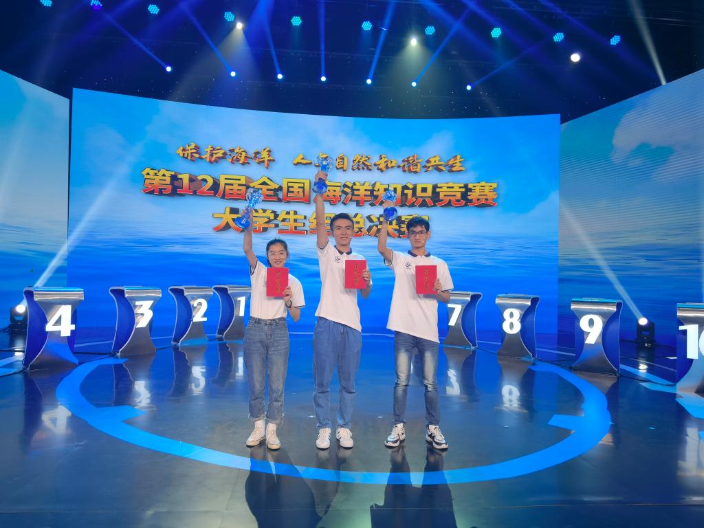 11月23日,由国家海洋局、共青团中央、海军政治工作部共同主办的第十二届全国海洋知识竞赛大学生组总决赛落下帷幕,我校海洋与地球学院2017级本科生姚程成获得全国冠军、南极奖、一等奖,2018级本科生翟瑞翔、李少坤、张铭雨分别获得一、二、三等奖,团委书记陈启妍获评“优秀指导老师”,我校获得“优秀组织奖”。至此,我校在过去的三届大赛中勇夺两届冠军,充分展现了我校选手深厚的海洋知识底蕴与自信担当的青春风采。