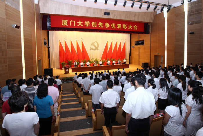 表彰大会由校长朱崇实主持。校领导,校长助理,校创先争优活动领导小组及其办公室全体成员,校党委委员、校纪委委员,中层干部,院党委(党总支)创先争优活动领导小组成员,部门工会主席,院团委书记、副书记,妇委会主任,党支部书记代表,各民主党派、团体负责人,无党派人士代表,辅导员,教职工代表,学生代表,离退休教职工代表,入党积极分子代表及受表彰单位代表和先进个人出席了表彰大会。